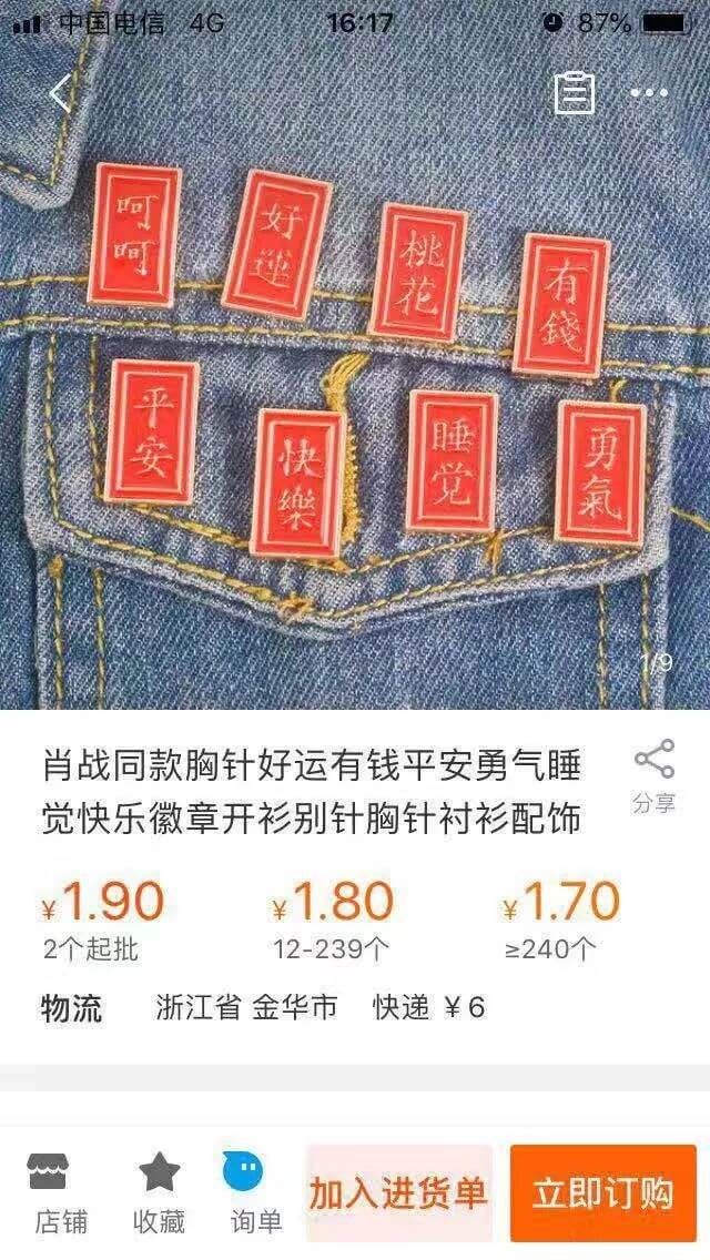 大兔提到的第一个商品是一款胸针。我的确是一直拖延着没有补货。现在回想了一下没有补货的原因,是因为我不认同这款产品显露出来的庸俗和消费主义气息。妳们自己看吧。「桃花」,「有钱」,这是一个劳工机构应该去倡导的东西吗?我没有把网店看成是一个主要为了赚钱的平台,因此内心极力抵制此类无聊的商品。