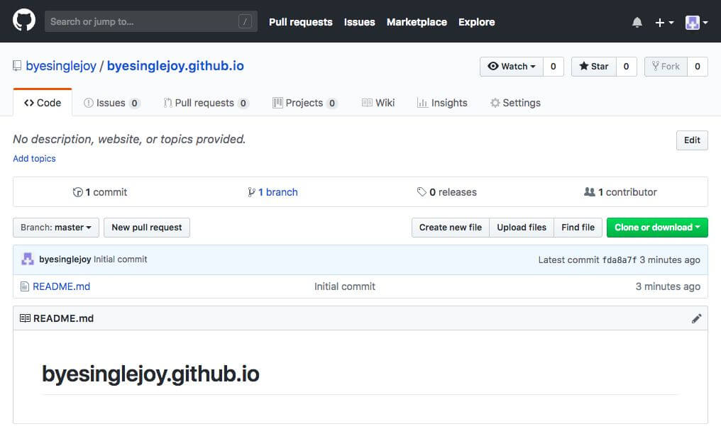 通常过几分钟,“username.github.io"就可访问,这时我们的网站已经被创制出来了。我们还需要修改它的显示内容,以表达我们的意见,呈现真实世界。 这时返回首页,即可看到我们的项目库已经建立,点击进入。