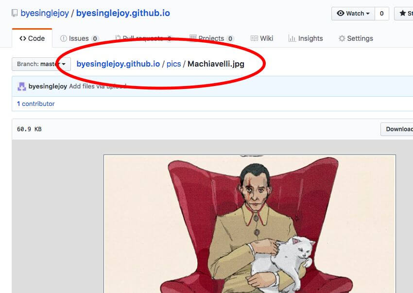 如只是游击性质的临时站点,可直接将图片上传至根目录,在项目首页直接"Upload new file"即可。