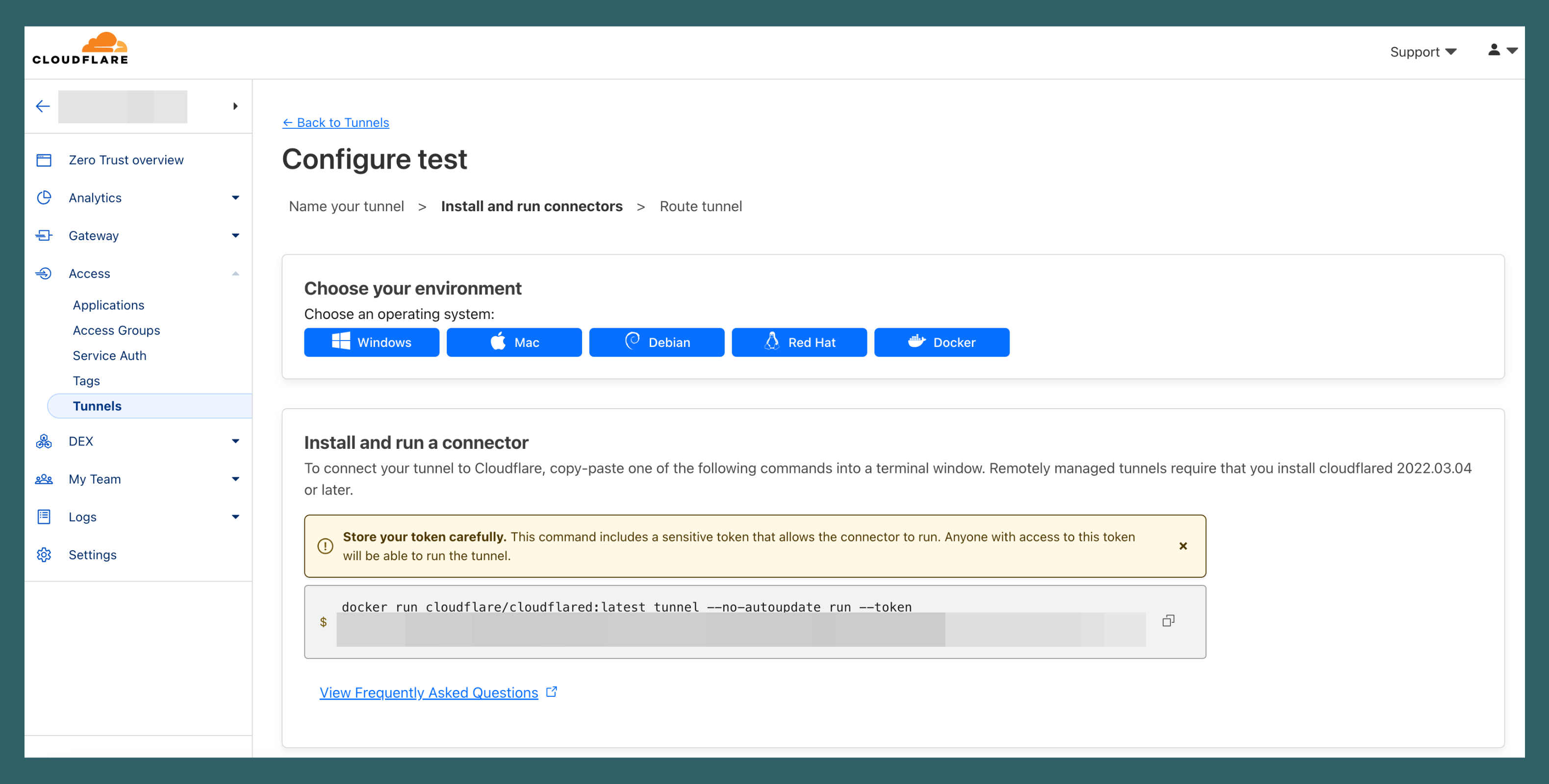 獲得 your_token 之後,使用以上命令部署 Cloudflare Tunnel。