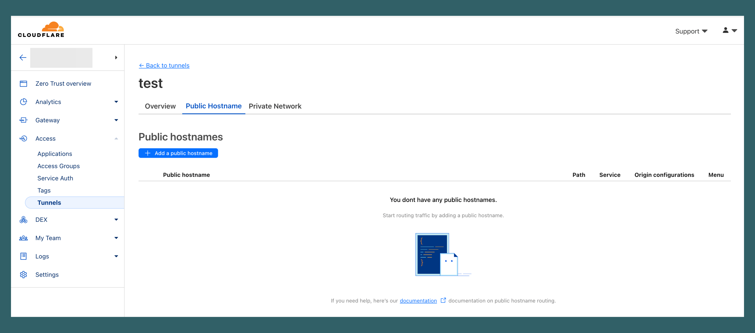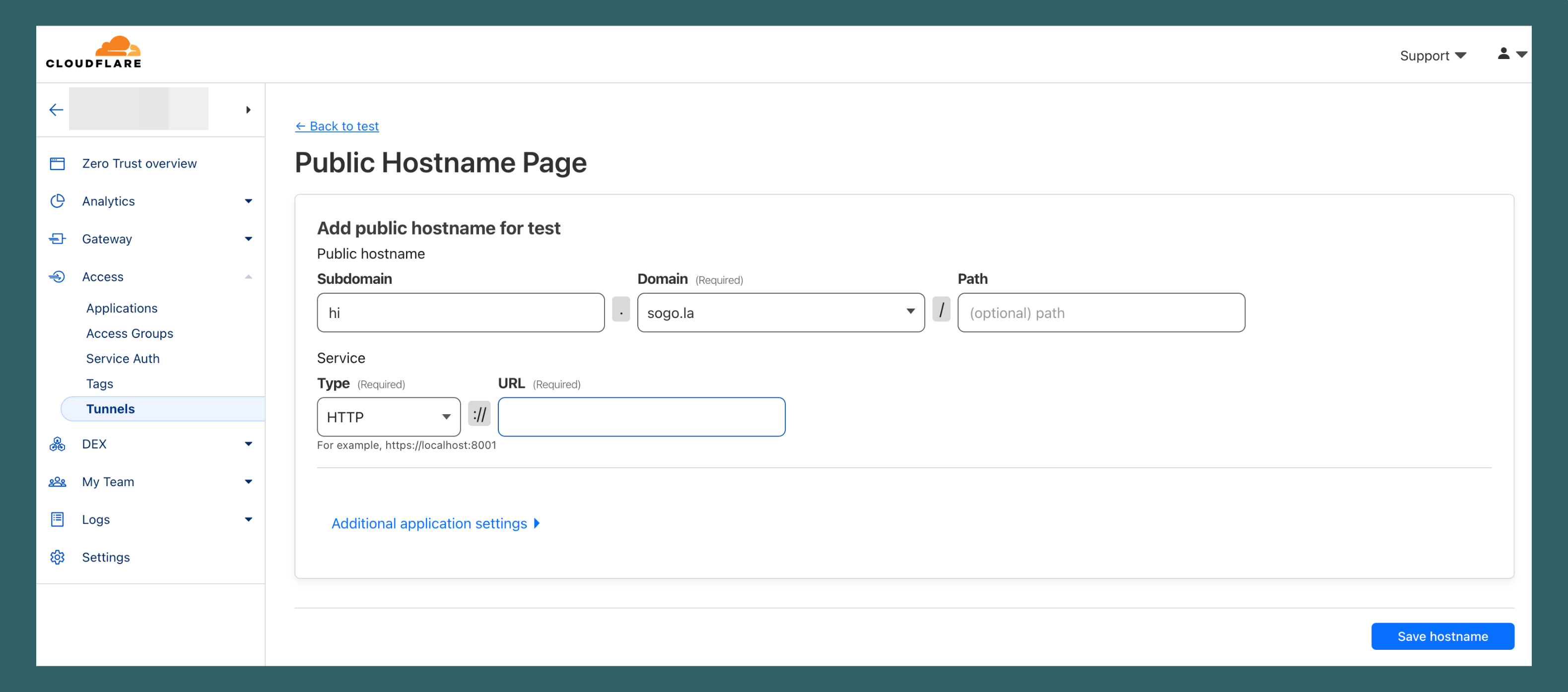 運行以上命令,部署 GoToSocial。其中 GTS_HOST 為 GoToSocial 的域名,這裡需要將域名添加至 Cloudflare,並域名服務商處將 DNS 修改為 Cloudflare 的 DNS。接下來,我們只需要將 GoToSocial 的本地端口連結至 Cloudflare Tunnel,就萬事大吉了。