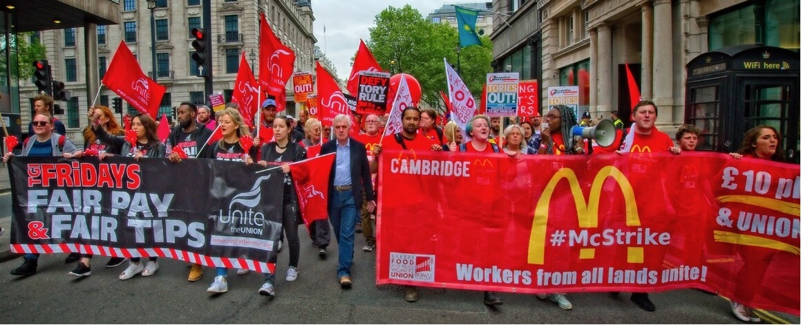 其实早在2017年9月,工会就组织了英国历史上第一次麦当劳工人罢工,要求最低时薪10英镑,并保证工作时间,承认工会的地位。