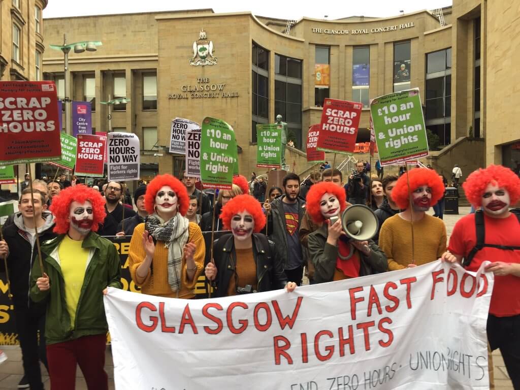苏格兰格拉斯哥快餐工人在罢工,图片来源:fastfoodrights.wordpress.com
