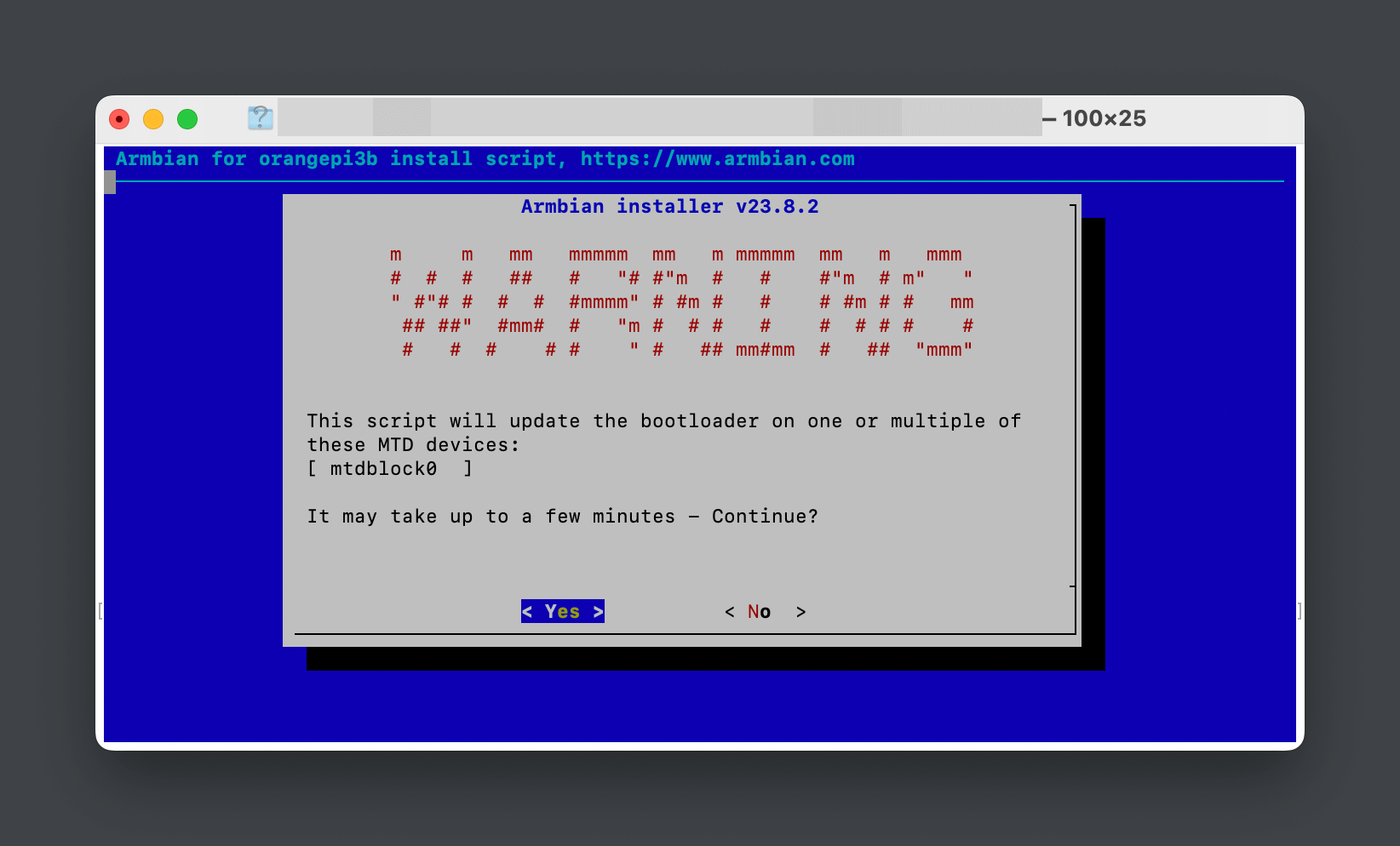耐心等待進度跑完,期間香橙派的藍色信號燈會快速閃爍。